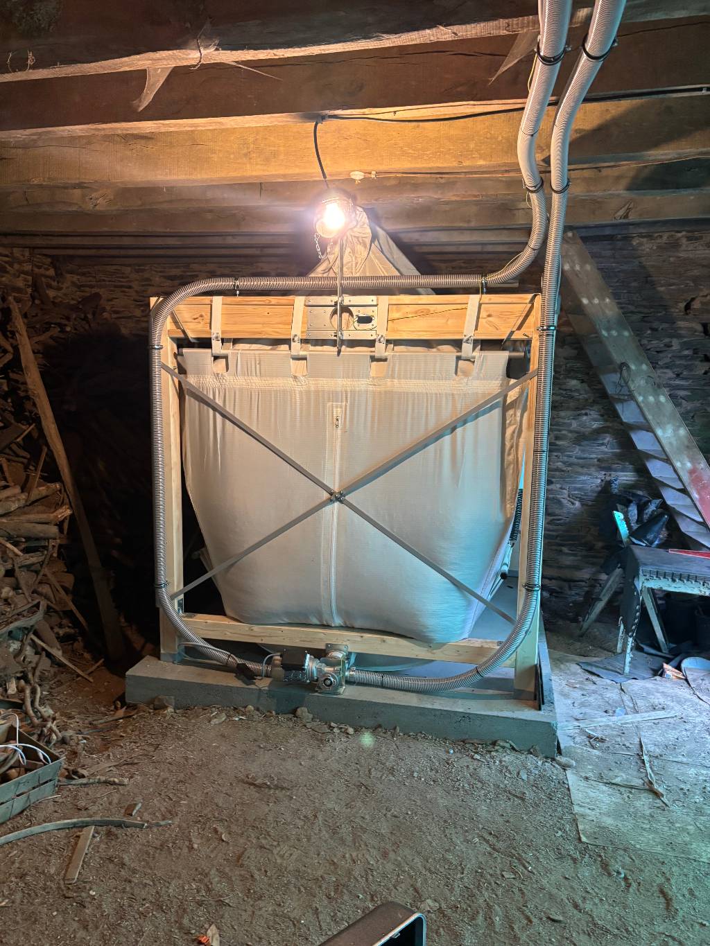 Création d'une chaufferie biomasse ÖkoFEN pellet compact 25 kW avec son ballon tampon 600 litres et gestion smartphone dans une maison de 200 m² environ avec un plafond de 3,5 m.